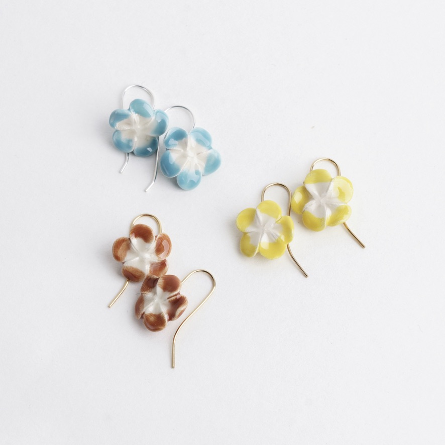 Små smørblomster i porcelæn på ørekrog. Fås i gul, rustrød og himmelblå.