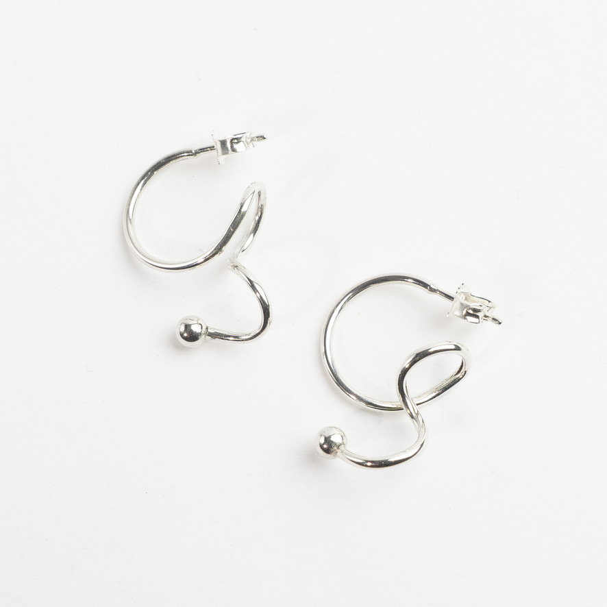 Håndlavede hoops med krølle på. Sølv eller forgyldt sølv. Længde ca 30 mm.