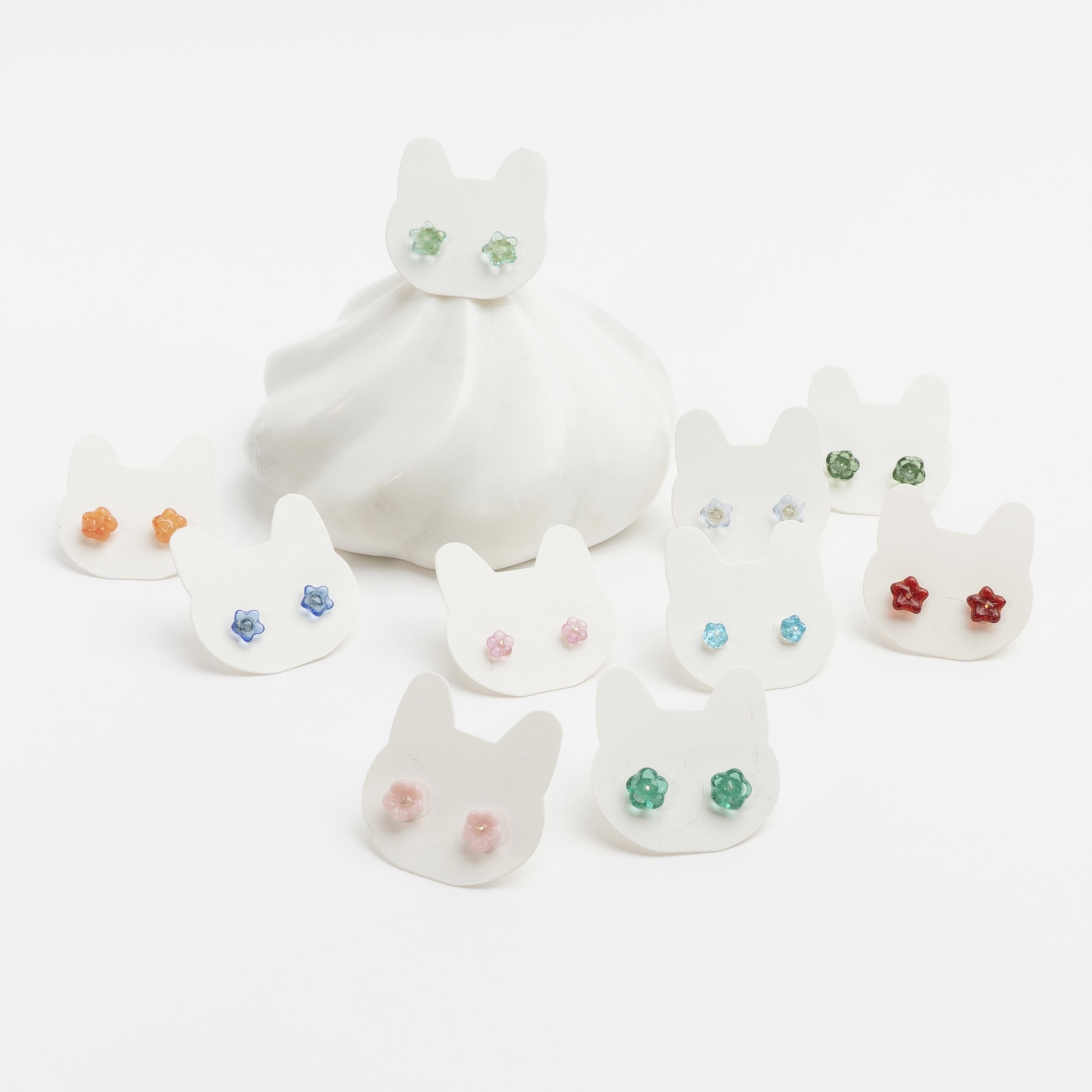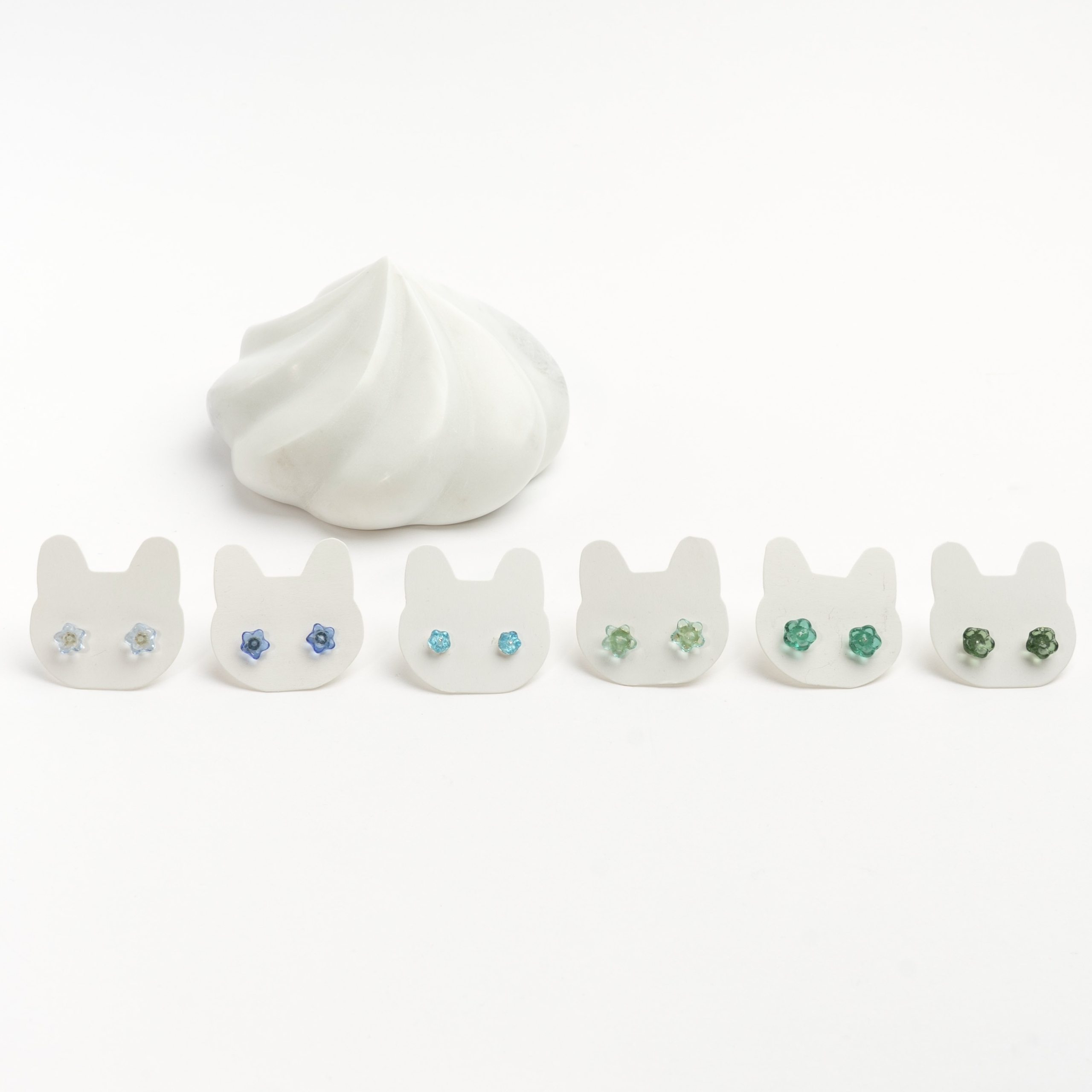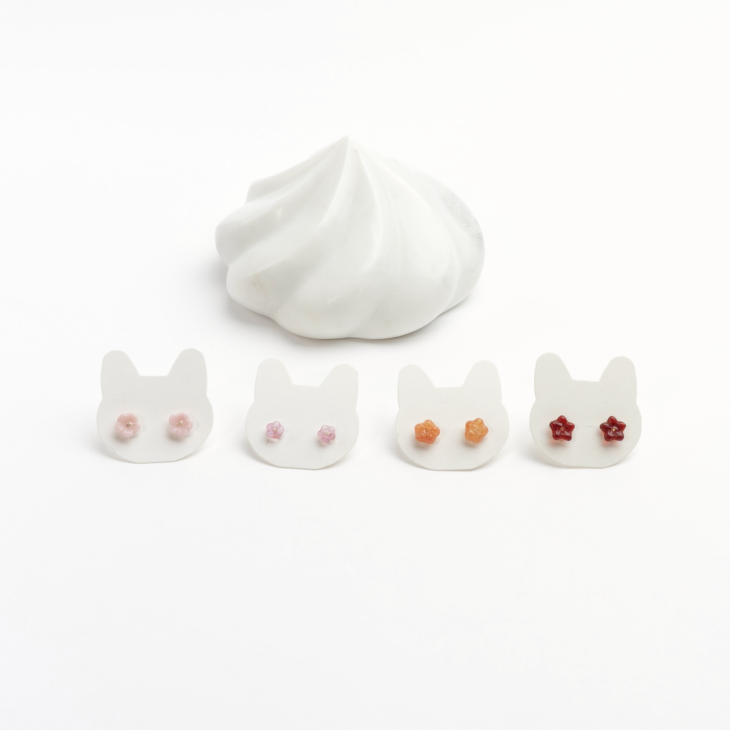 Søde ørestikker i sølv eller forgyldt sølv med små glasblomster.