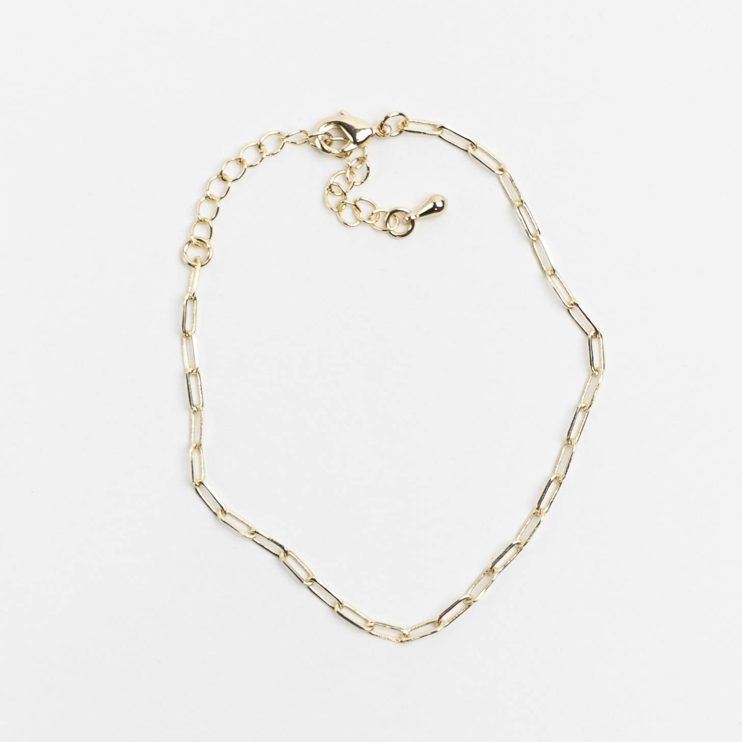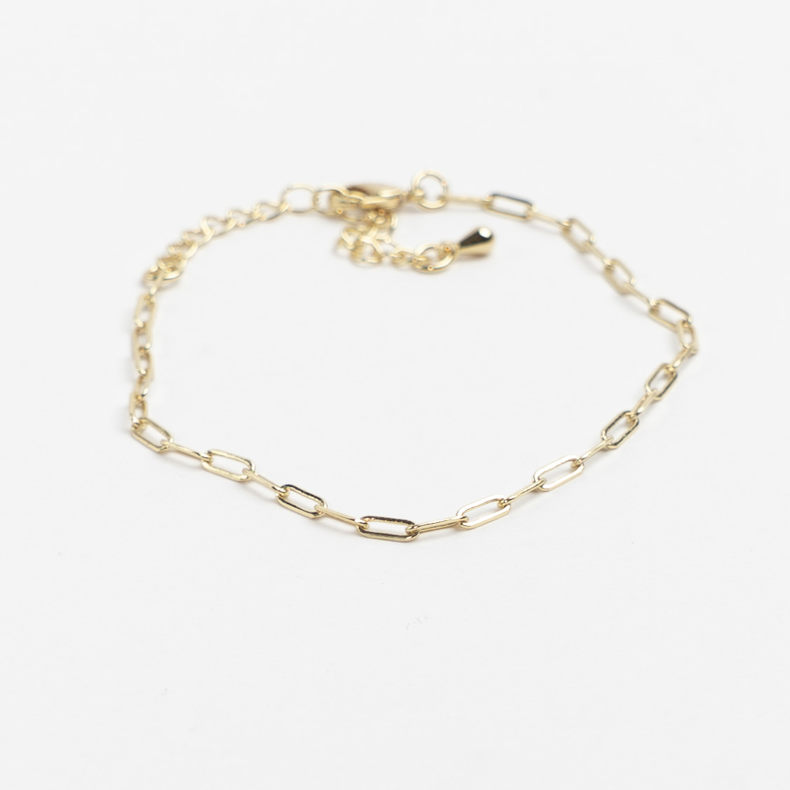 Armbånd i forgyldt messing med små aflange led. Et yndefuldt smykke som kan bæres alene eller sammen med andre armbånd.