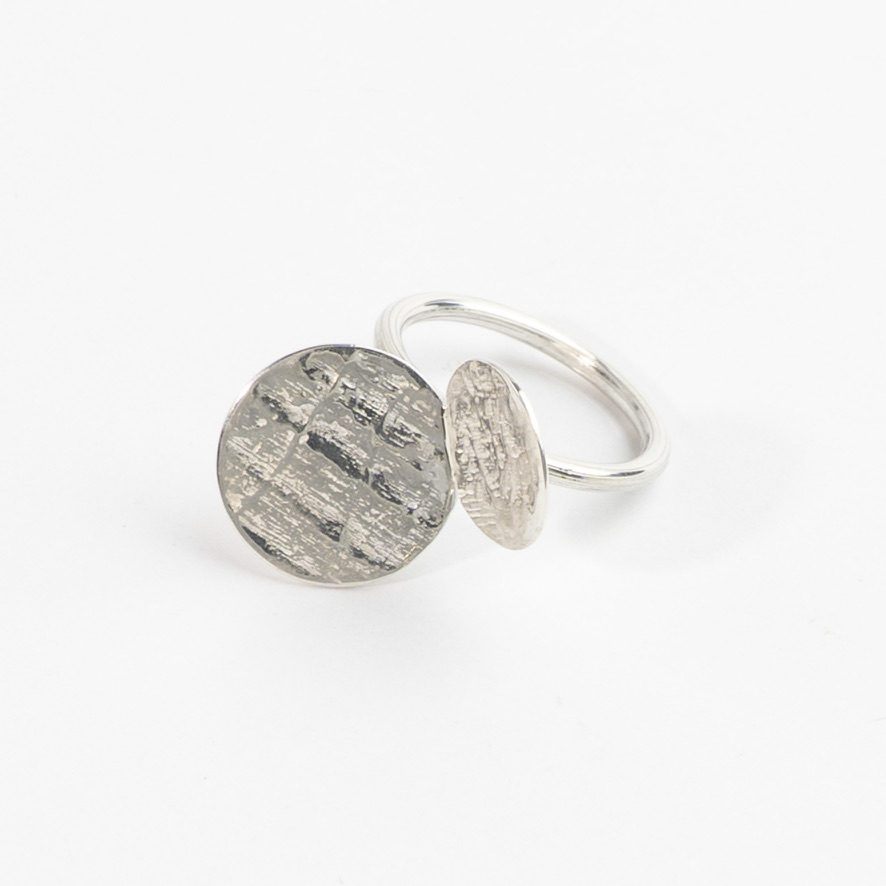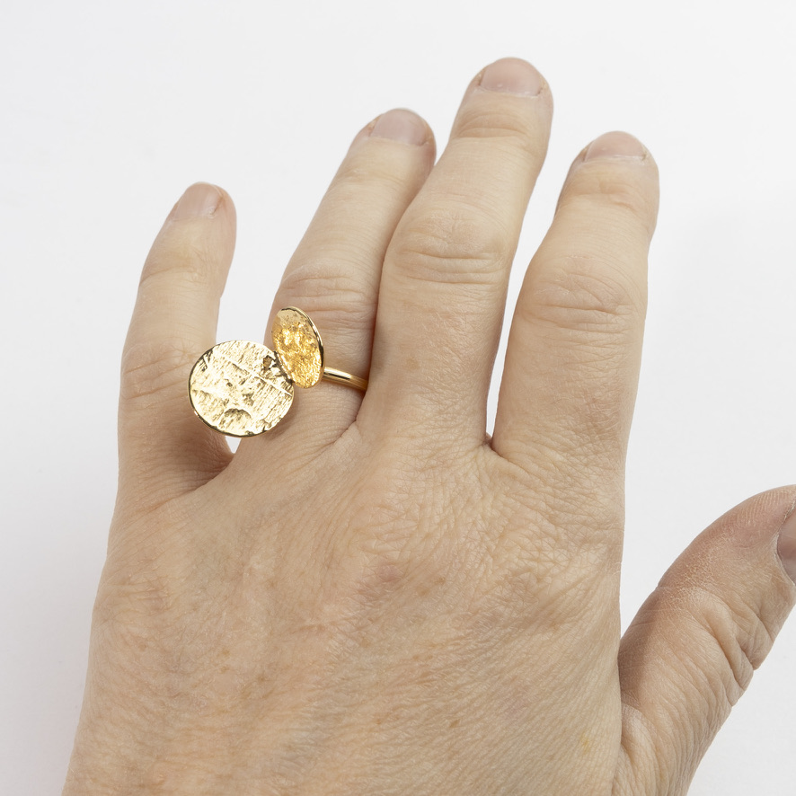 Håndlavet ring i sølv eller forgyldt sølv med vores signatur-“Mitosis” med træstruktur. Mitosis’en måler ca. 23,5 x 16 mm.