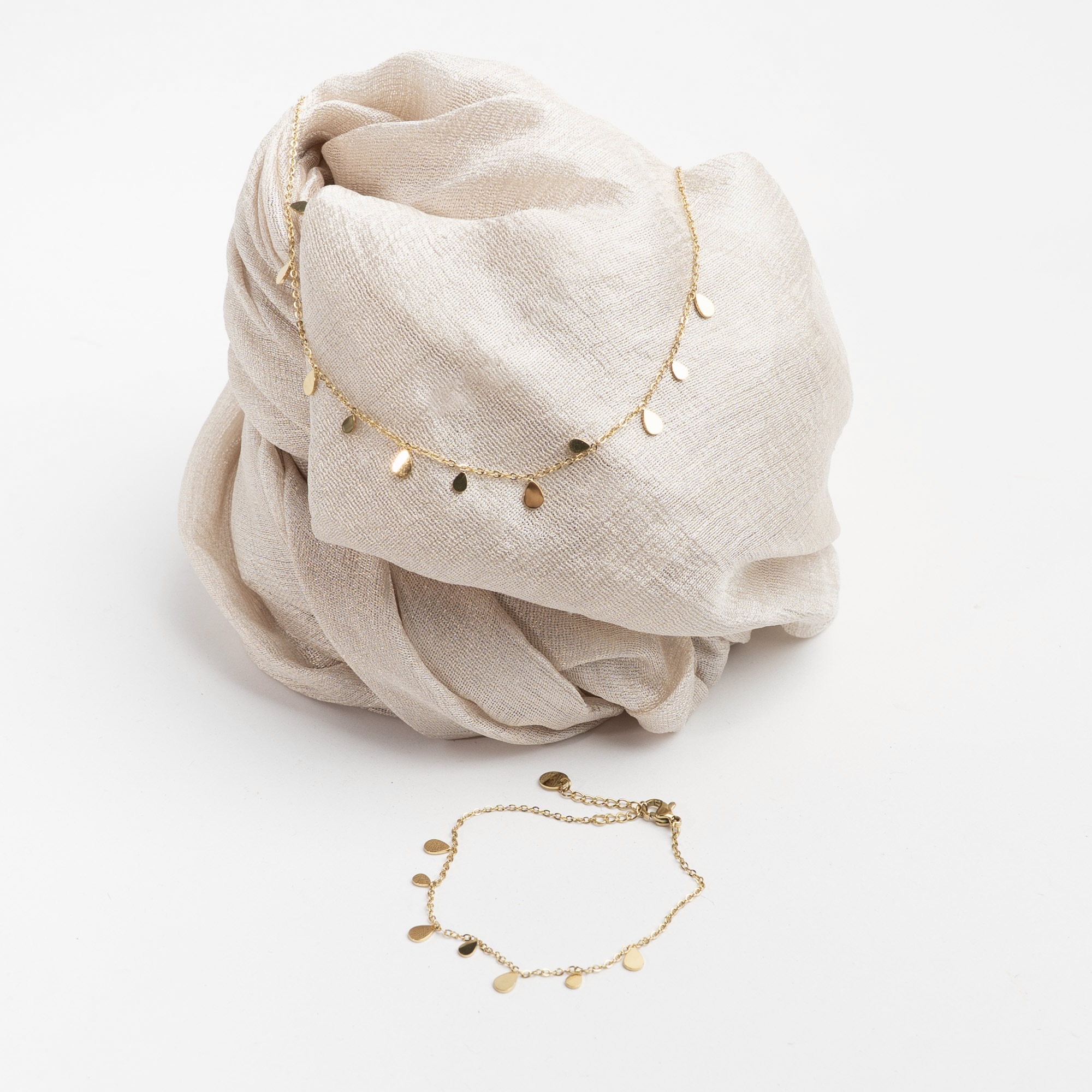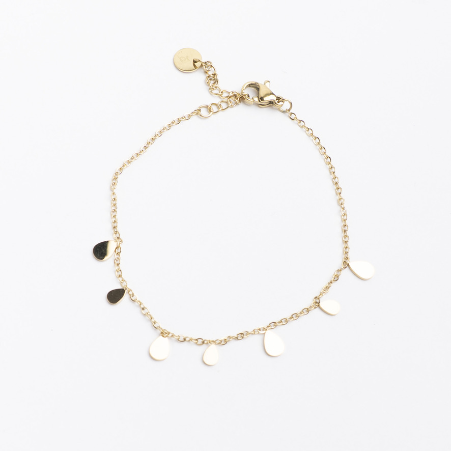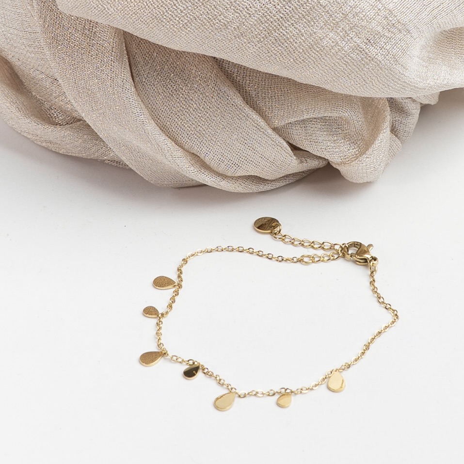 Armbånd i allergivenligt forgyldt stål med små blanke regndråber.