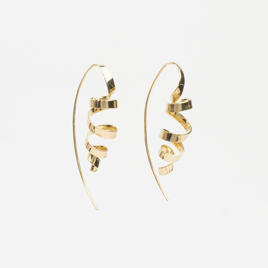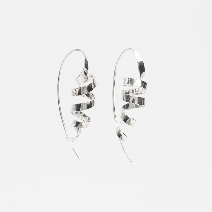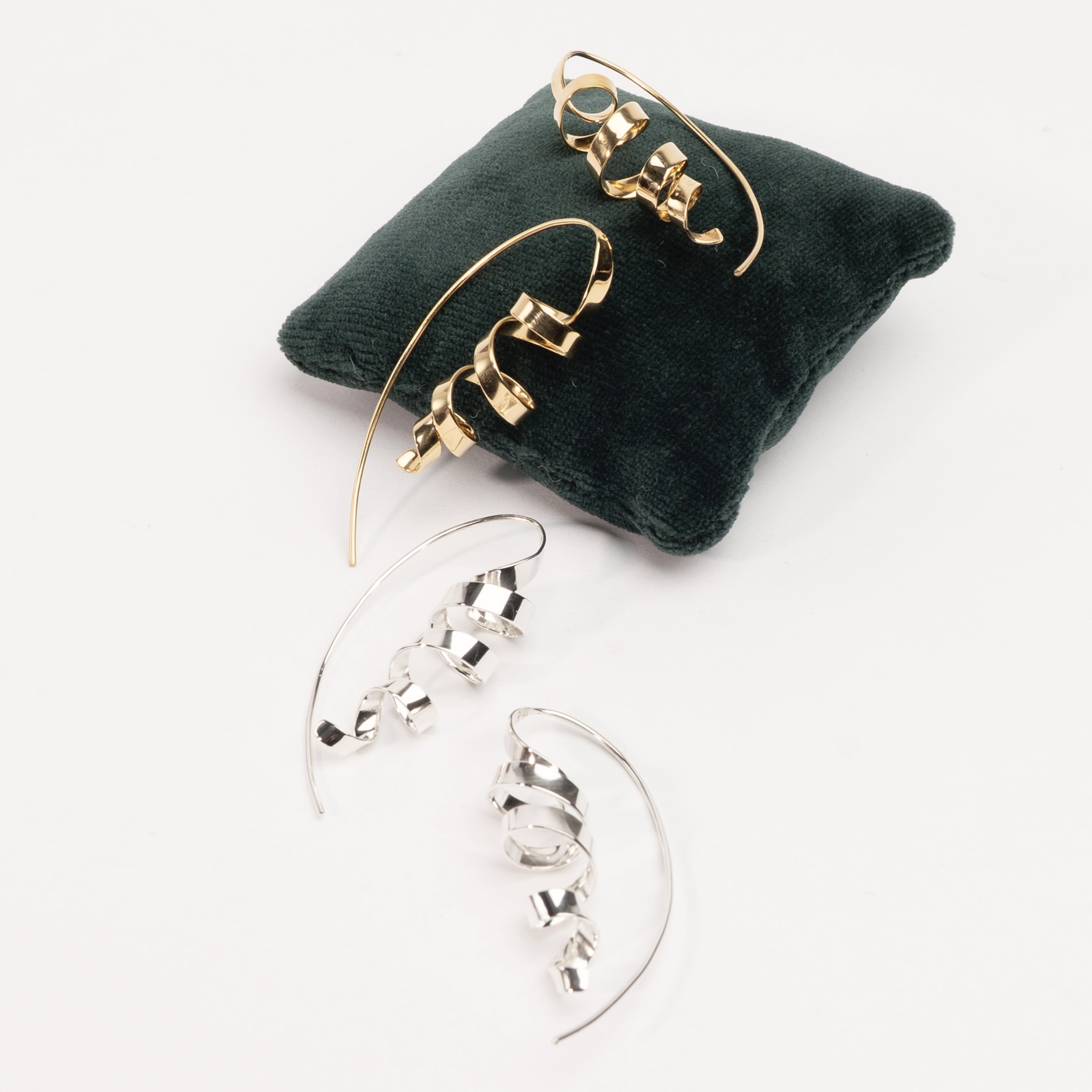 Disse festlige øreringe er inspireret af serpentinerne som vi pynter op med til nytår og ved andre ekstra festlige lejligheder. På øret giver de et smukt spil da overfladen spejler omgivelserne.