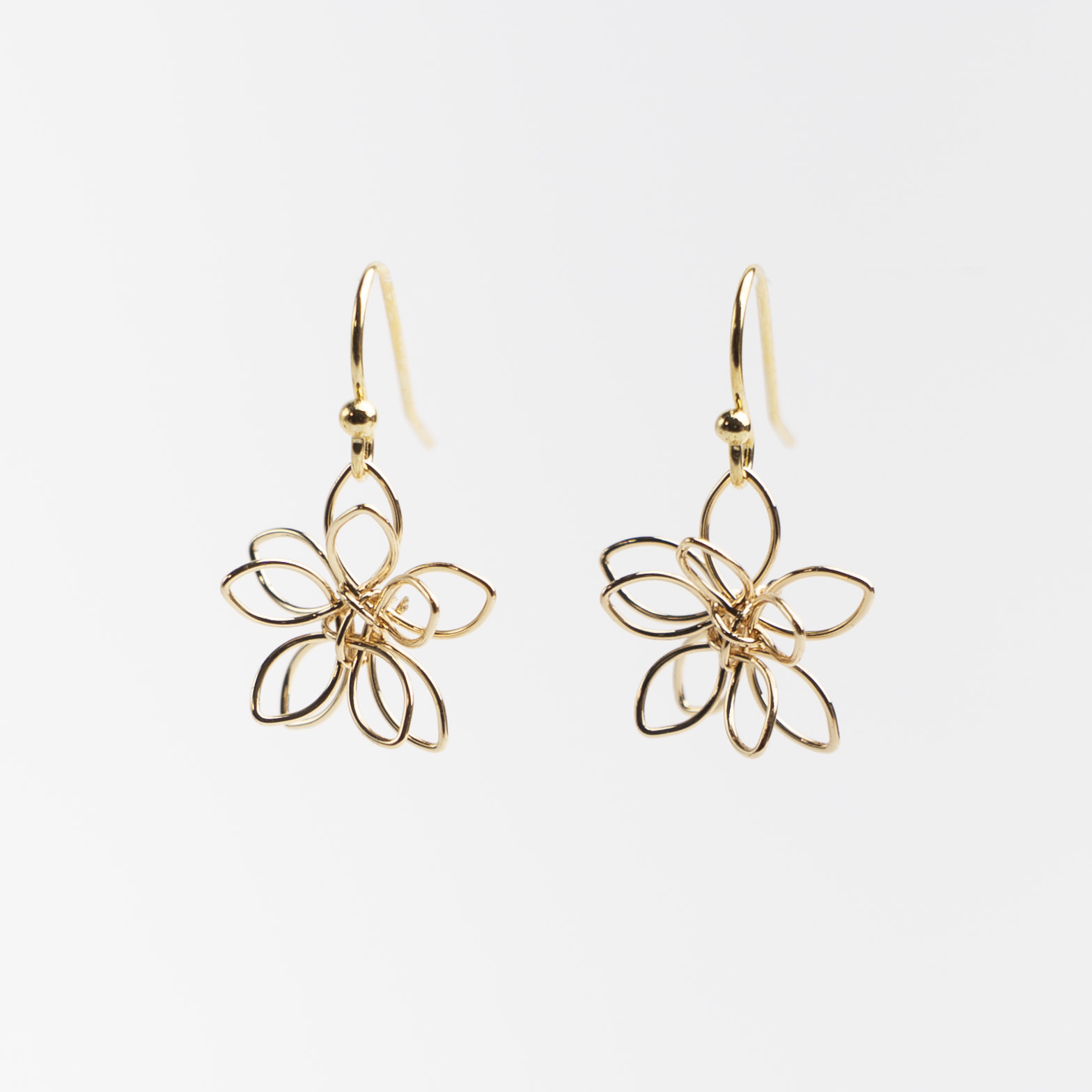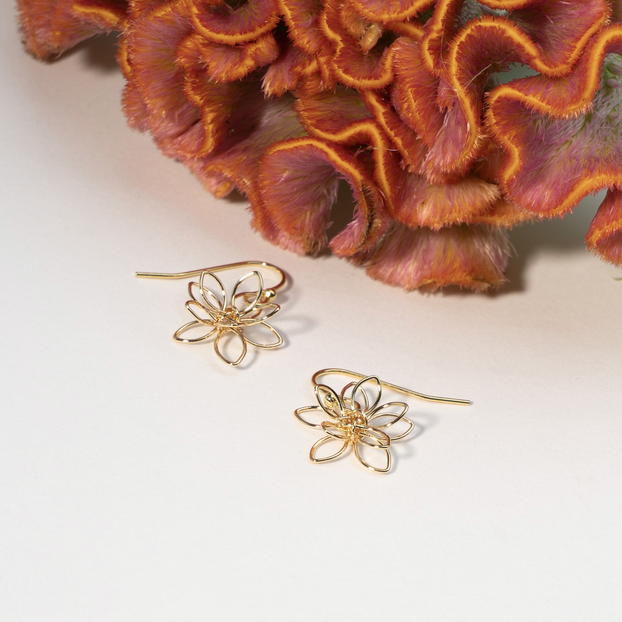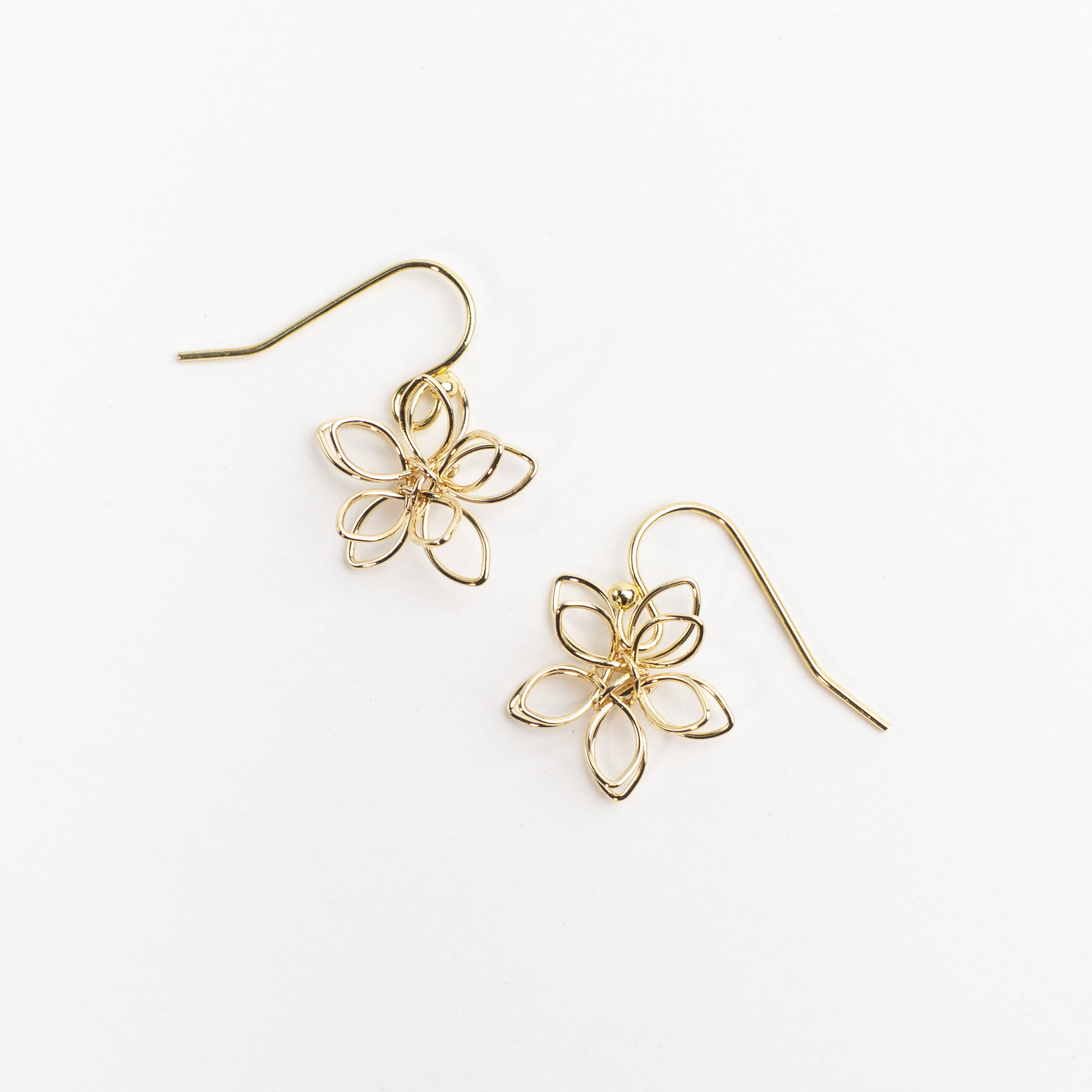 Ørekrog med lille blomst i 18 k forgyldt messing.